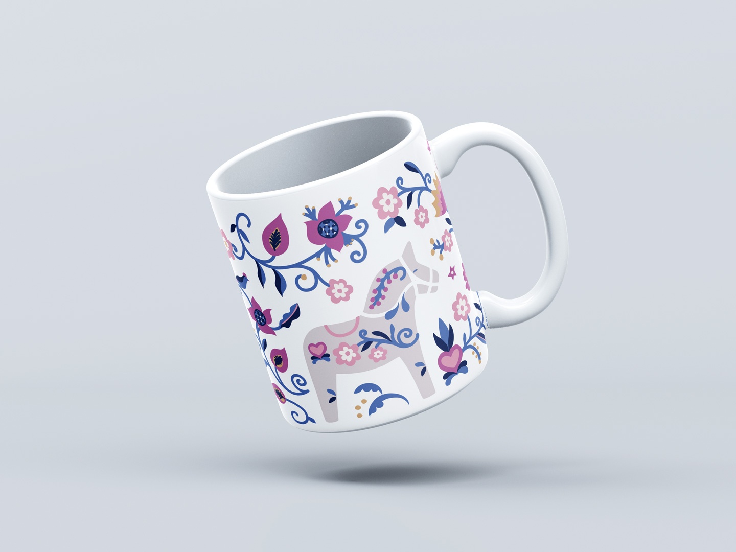 Vit mugg med Blekingemönster och Dalahäst